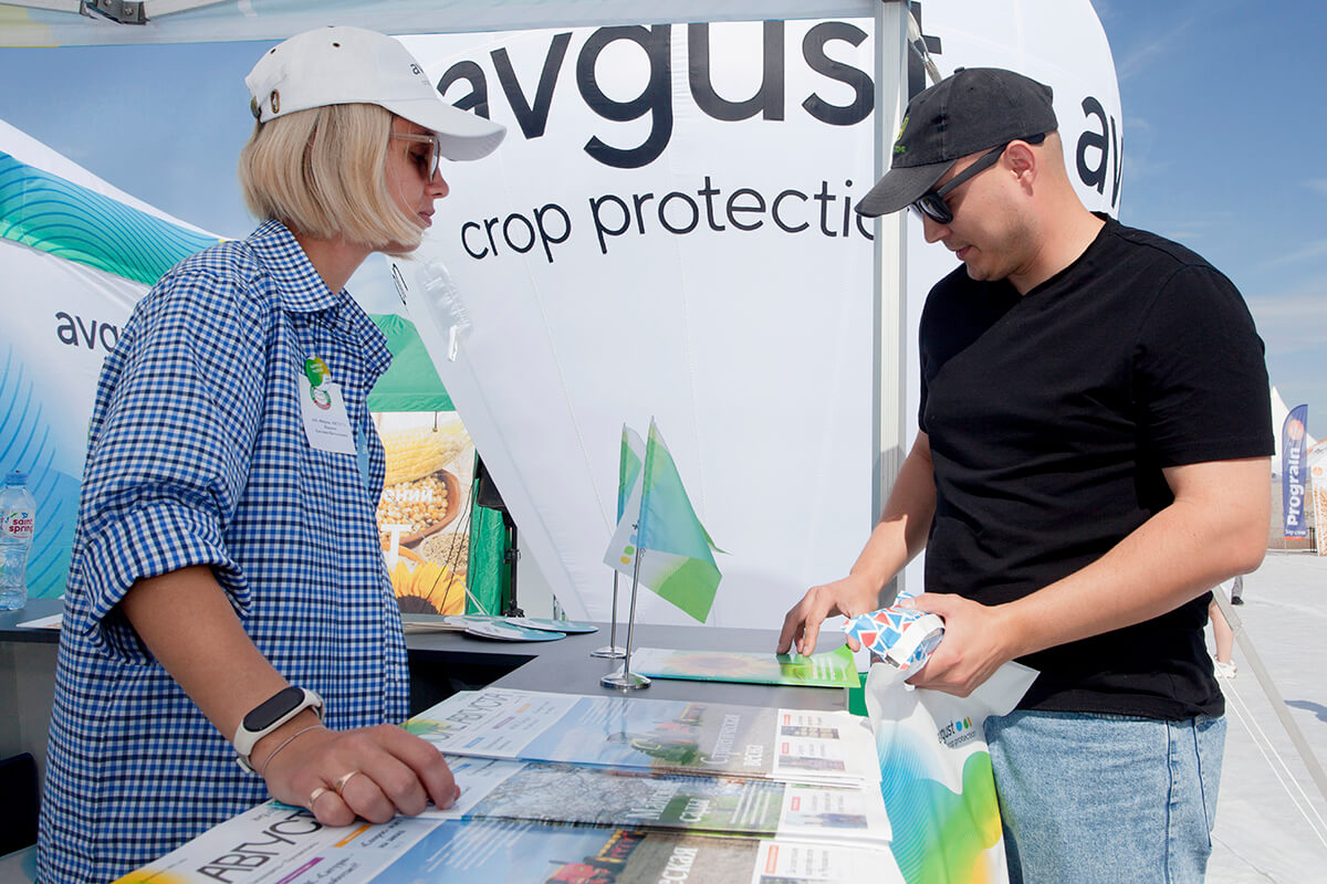 "Быйыл соядагы "Августа" препараттарынын ишине "Сев-07"чарбалык вариантында баа берүүгө болот. Коргоо системасы 95% биздин компаниянын препараттарынан турган. Бул жерде когорт гербициддери, Квикстеп, Корсар, Плектор, ошондой эле фунгицид Колосал Про колдонулган.