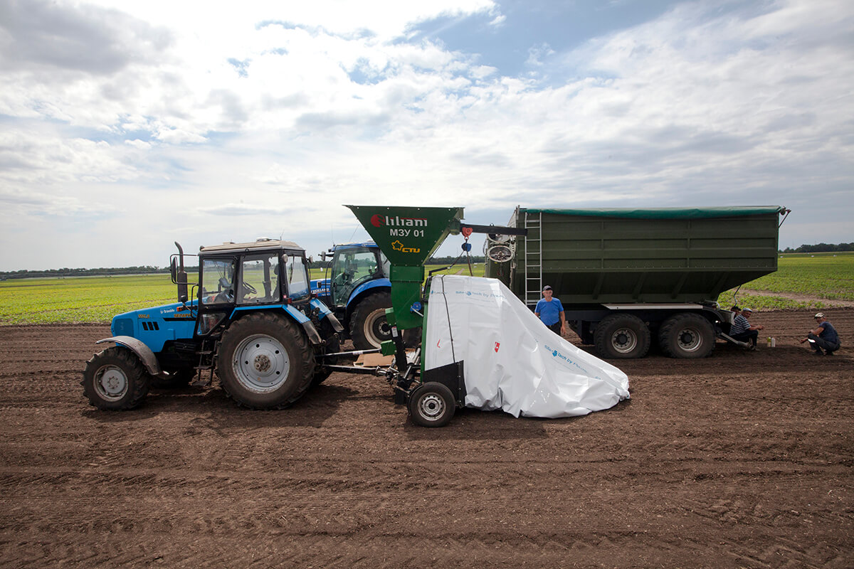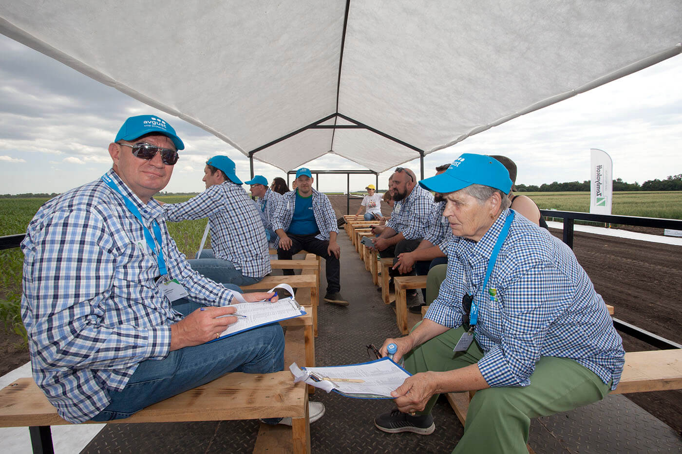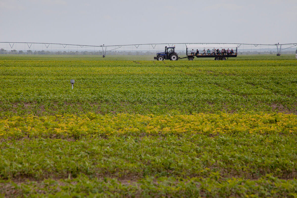 Агрополигонго келгендер "Сев-07" алдыңкы чарбасынын технологиясы жана техникасы менен таанышып, анын адистери менен баарлашышты, ошондой эле дан соя Бирлигинин өнөктөштөрү сунуш кылган техниканын жаңылыктары жөнүндө билишти.