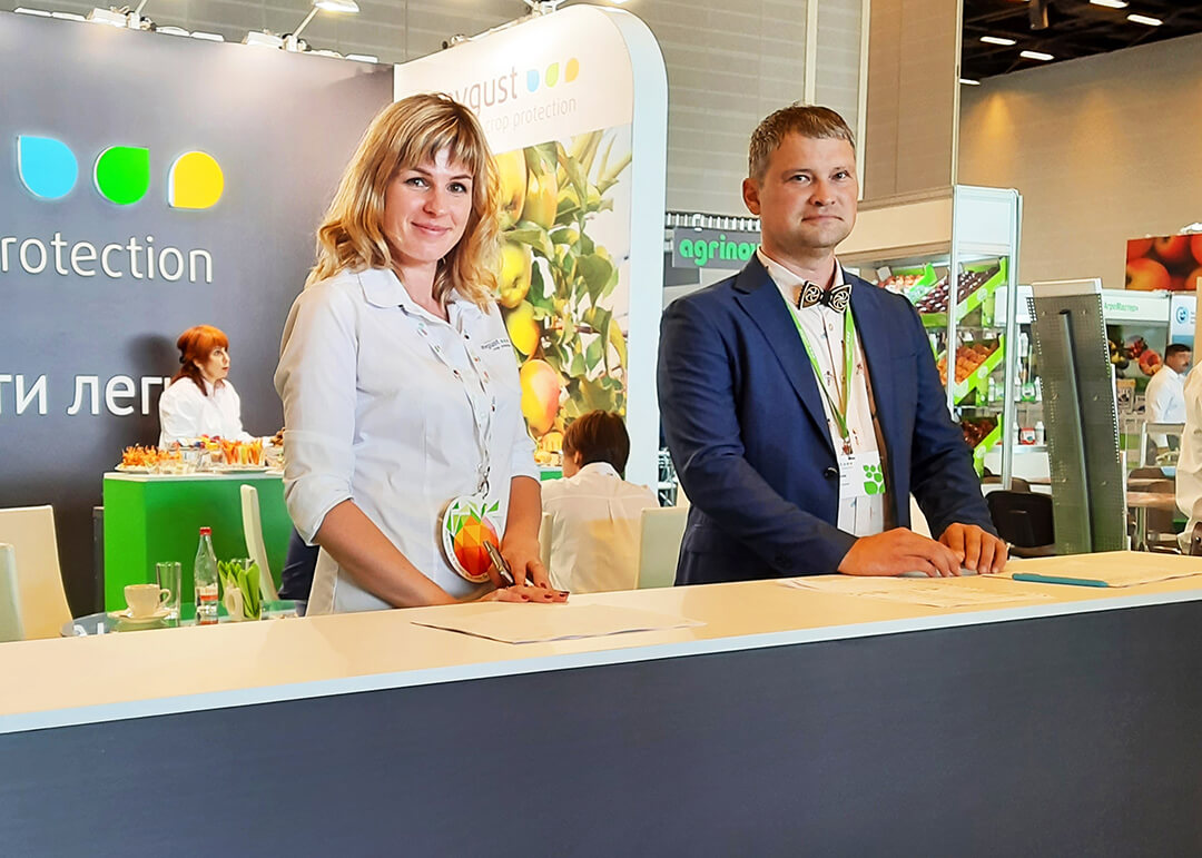 "Августа" стендинде тажрыйбалуу адистер конокторго жана Көргөзмөнүн катышуучуларына бакчаларды коргоонун бардык маселелери боюнча кеңеш беришти. Алар рассказывали жөнүндө суроо-талап кылынган азыктарында компаниянын – фунгицидах Тирада®, Раек®, кумириңиз ким® жана новинке Клеймор®, инсектицидах Борей® Нео жана Герольд®. Ошол эле жерде Полифем ОТС, Аллюр от жана пегасит горшок көбүк кетиргич компаниясынын адъюванттары боюнча көрсөтмө материалдардын экспозициясы көрсөтүлдү.