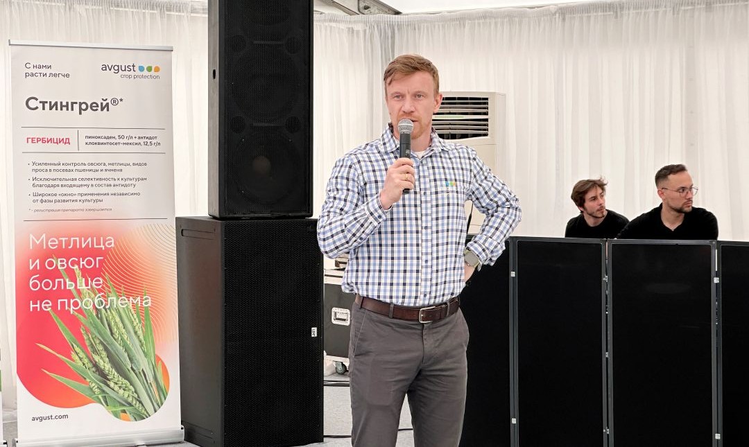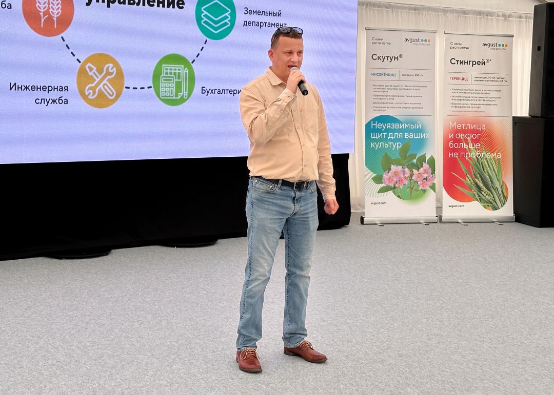 "Августа" маркетинг департаментинин башчысы Дмитрий Белов аба ырайынын татаал шарттарында маданияттарды коргоо жөнүндө айтып берди. Ал компаниянын жаңылыктарына – Байсайд жана Стерлинг морданттарына, стингрей гербицидине жана Ланцей жана Евклид фунгициддерине өзгөчө көңүл бурду.
