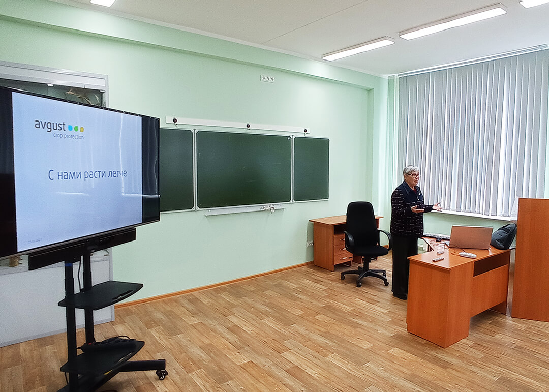 Кроме того, 25 марта консультант компании «Август» Зинаида Колотилина провела открытую лекцию для студентов и преподавателей КрасГАУ об инновационных технологиях в защите растений. Она рассказала о правилах протравливания и опрыскивания посевов ХСЗР, а также о новинках в линейке компании и ответила на вопросы слушателей.